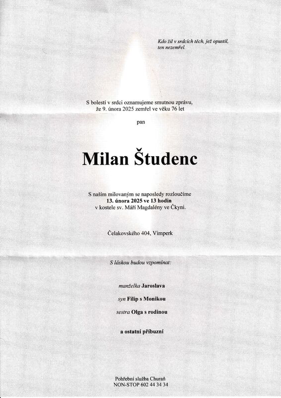 Měj se tam nahoře krásně. Zdraví tě Tvůj syn Filip, manželka Jaruška a moje partnerka Monička.